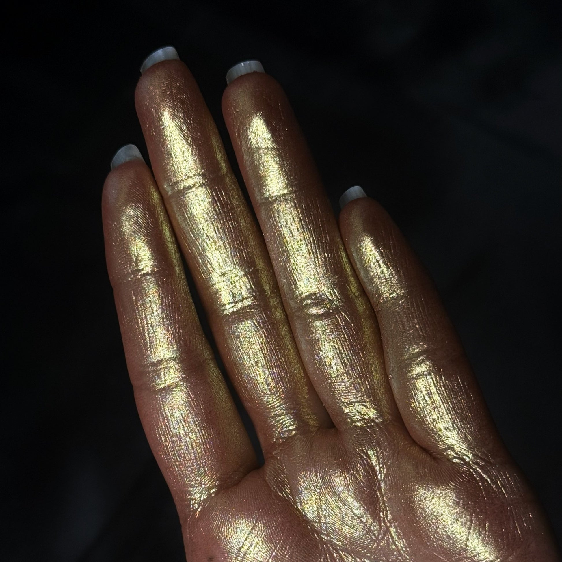 Timeworn Sheen: The ultra-smooth formula glides on like liquid metal, creating a hyper-reflective, molten metallic finish reminiscent of antique gold. Apply dry for a soft, glowing patina or dampen for a more intense, lustrous sheen. Expect beautifully complex pigment.