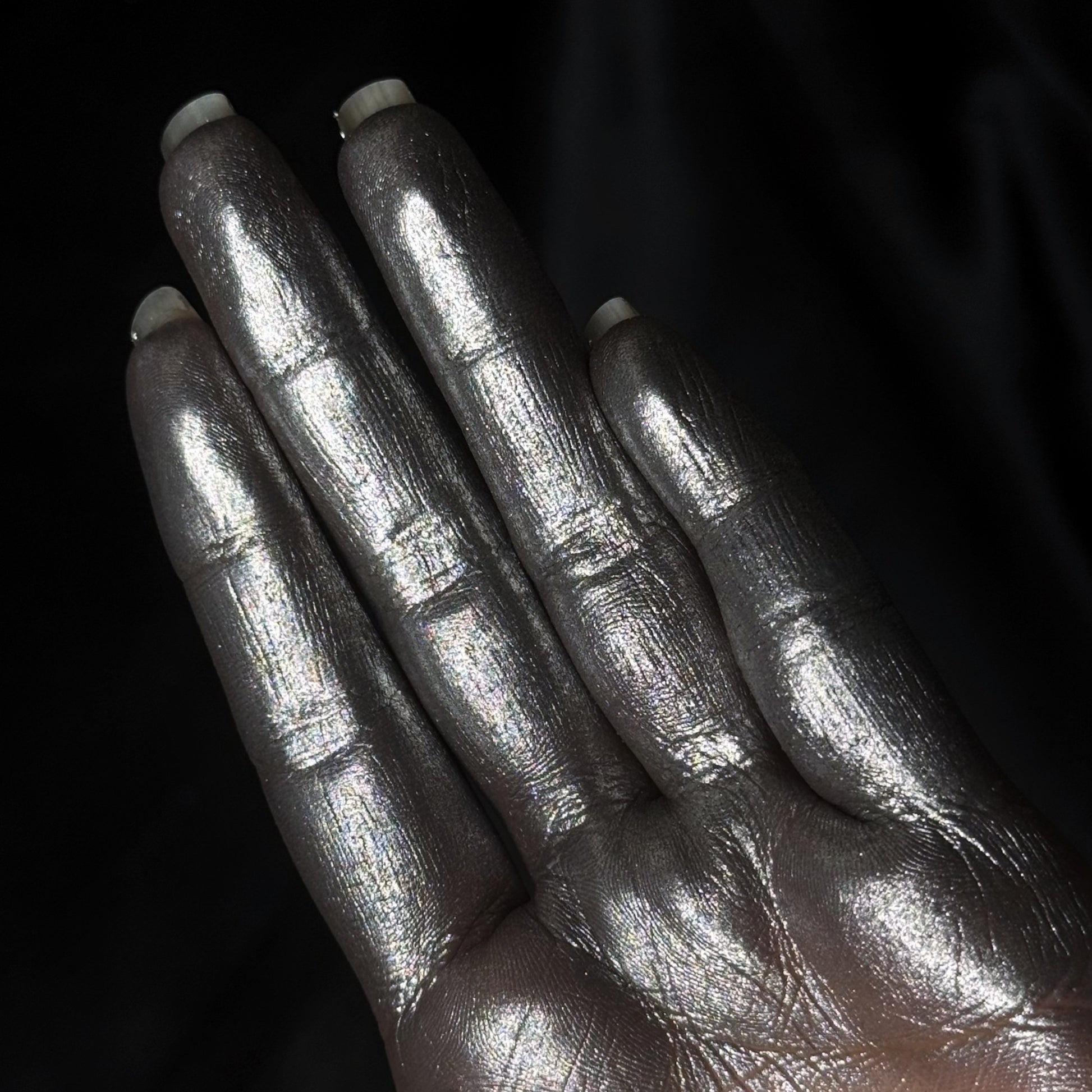 Celestial Sheen: The ultra-smooth formula glides on, creating a hyper-reflective, molten metallic finish reminiscent of starlight. Apply dry for a soft, twinkling glow or dampen for a more intense, dazzling sparkle. Expect beautifully radiant pigment.